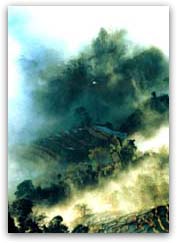 这里一年有两百天云海缠绕,云海停留在海湾里不肯离去,忽东忽西,忽上忽下,一会儿无影无踪,一会儿又弥天大雾,忽而往下蹿,淹没一层层梯田、村寨;时而往上蹿,露出一层层梯田、村寨,一天如此反复,每次各异。是观赏、拍摄云海、梯田、山寨的景区。