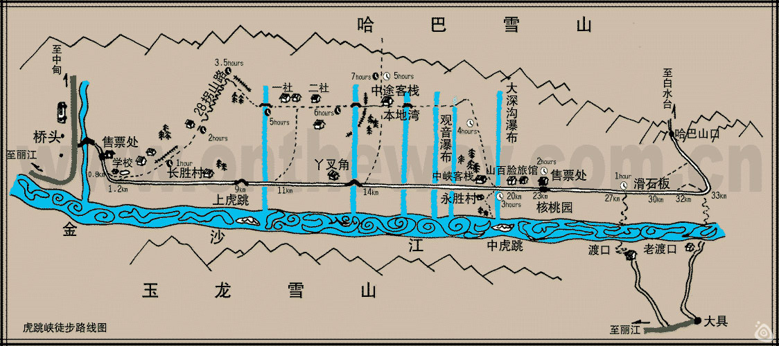 虎跳峡全程徒步手绘地图